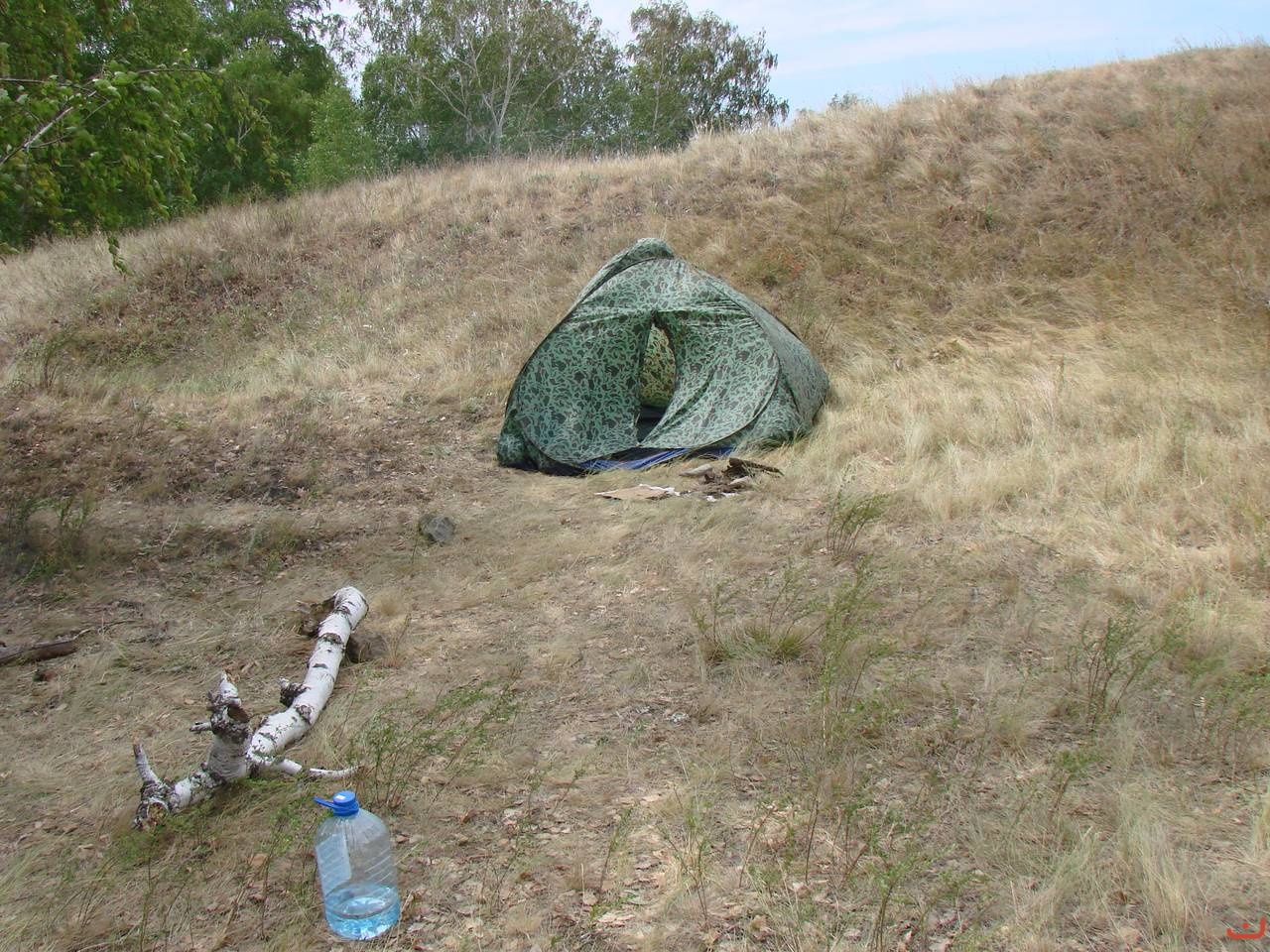 Собрав вещи, мы решили оставить здесь нашу палатку. Как писал выше, она была немного дырявая, но вполне пригодная для обитания. Ну и до кучи я оставил там свои рабочие кроссовки. Может, кому это всё пригодится после нас.