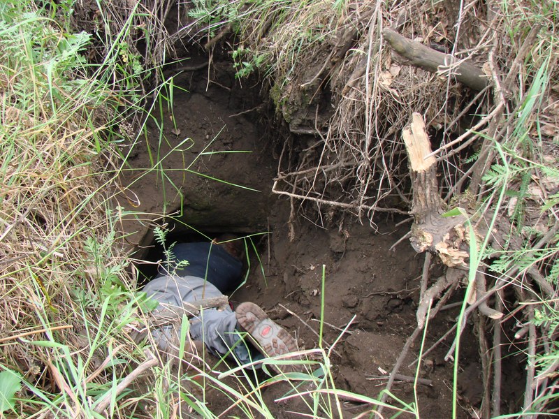 После расчистки вход стало возможным заглянуть внутрь, но проникнуть полностью не удалось. Штольня заполнена землей.