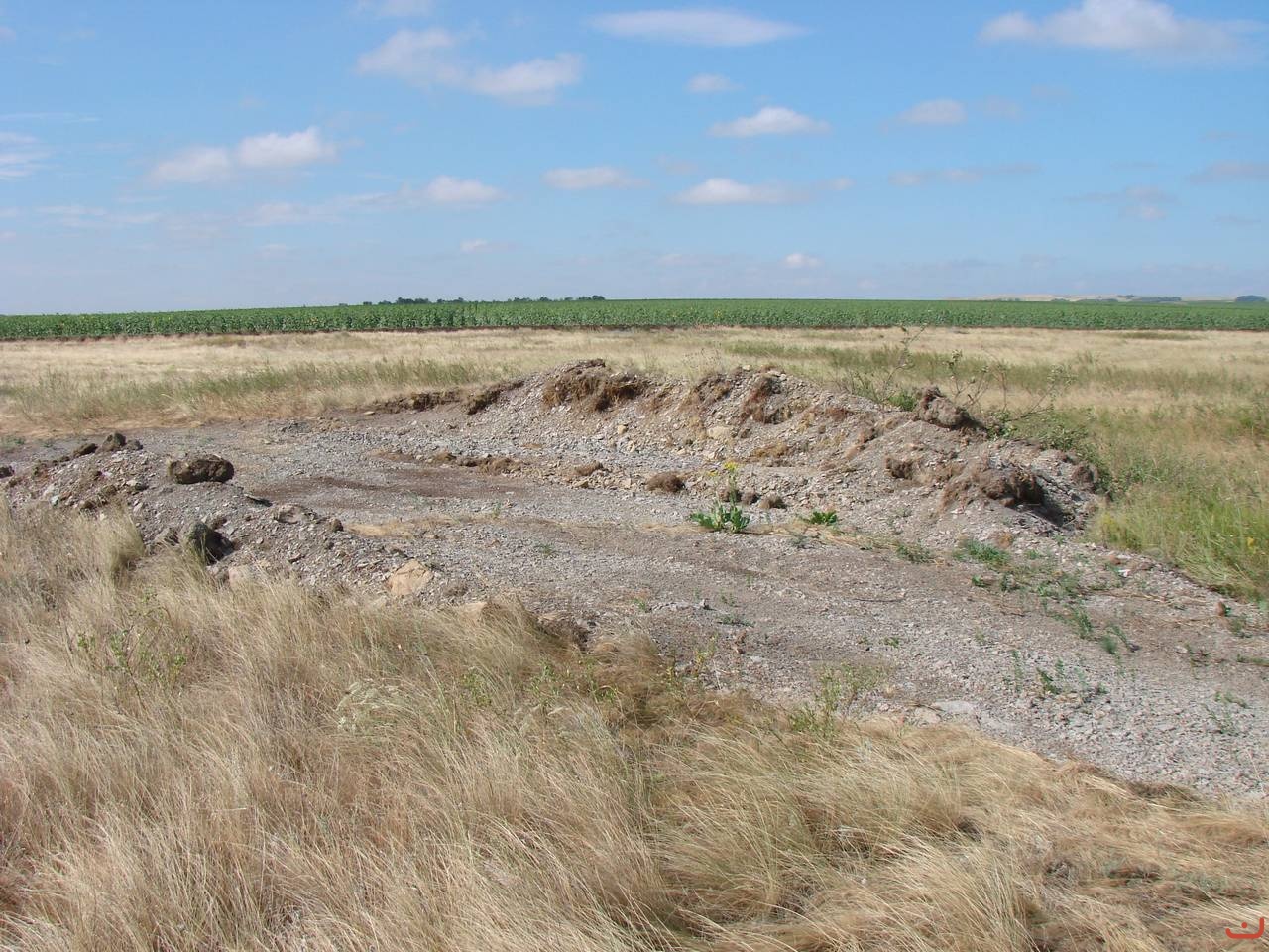 Впоследствии мы видели еще несколько отвалов, у которых боковая часть была снята ковшом бульдозера и отсыпана рядом. Возможно, там было слишком мало камней и их не стали срезать полностью.
